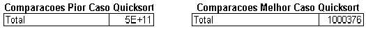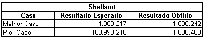 Observa-se na tabela (14-B) os números esperados para o melhor e para o pior caso. Ainda na tabela 14-B, verifica-se que os valores do melhor caso encontram-se abaixo dos valores obtidos, assim como, os do pior caso encontram-se acima dos valores obtidos. Neste ponto, é bom recordar que o melhor caso do algoritmo, conforme mostrado anteriormente, não ocorre quando o vetor estiver inicialmente ordenado; e da mesma forma o pior caso não ocorre na situação contrária.