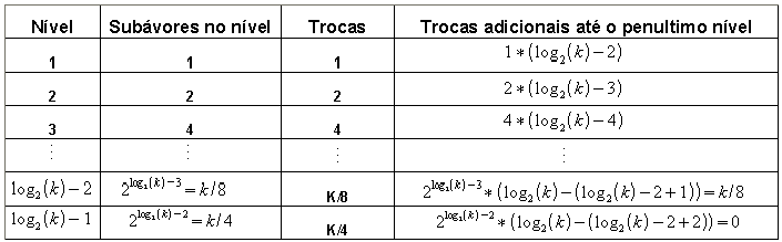 para i = 1, k / 2. Pelo lado contrário, o pior caso ocorre