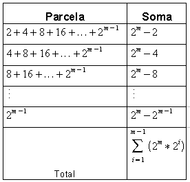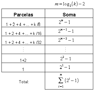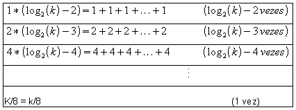 valores de n e de k e comparando-os com as quatro primeiras linhas da