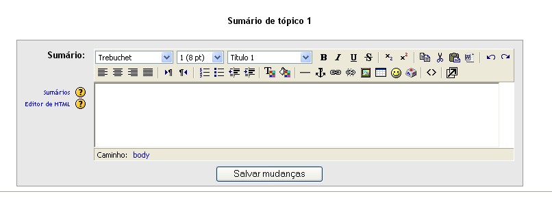 Clicando no mesmo aparecerá um editor html próprio do Moodle: