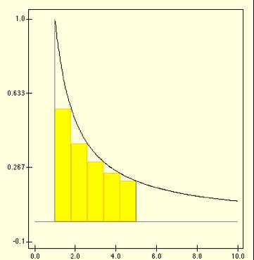 pode ser pela decomposio do intervalo [a,b] em subintervalos justapostos, como na figura abaixo , e pelo calculo (com valor aproximado, por falta) do valor da rea pela soma das reas dos retngulos no desenho.