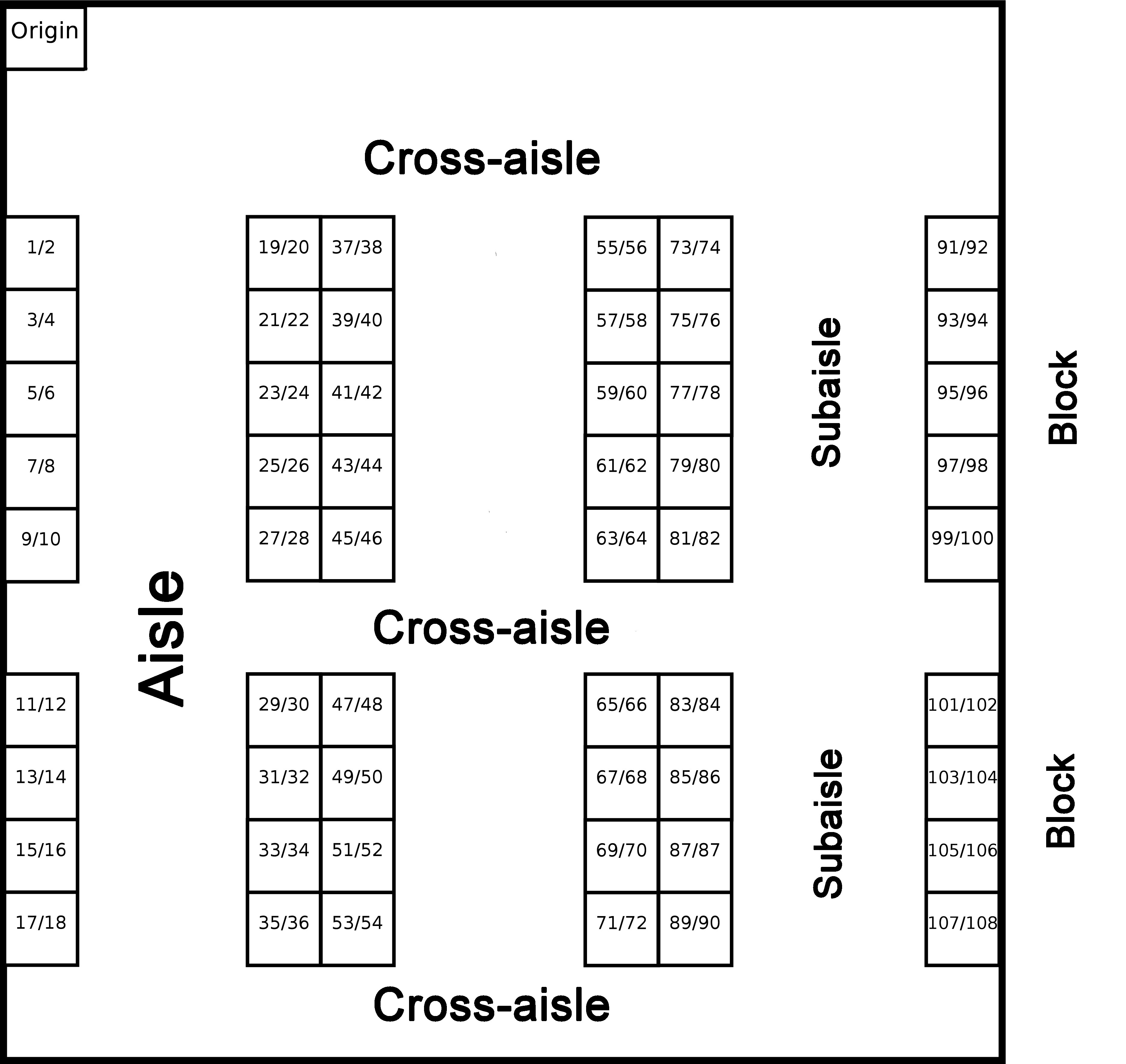 The warehouse generator can be downloaded here. Both warehouse files above (single and multiple blocks) were generated with this script. Parameters can be changed inside the script itself. It was developed in PERL and can be used to generate warehouse layouts with different number of aisles, cross-aisles and able to hold any number of products. It is based on a previous version developed during the following work: