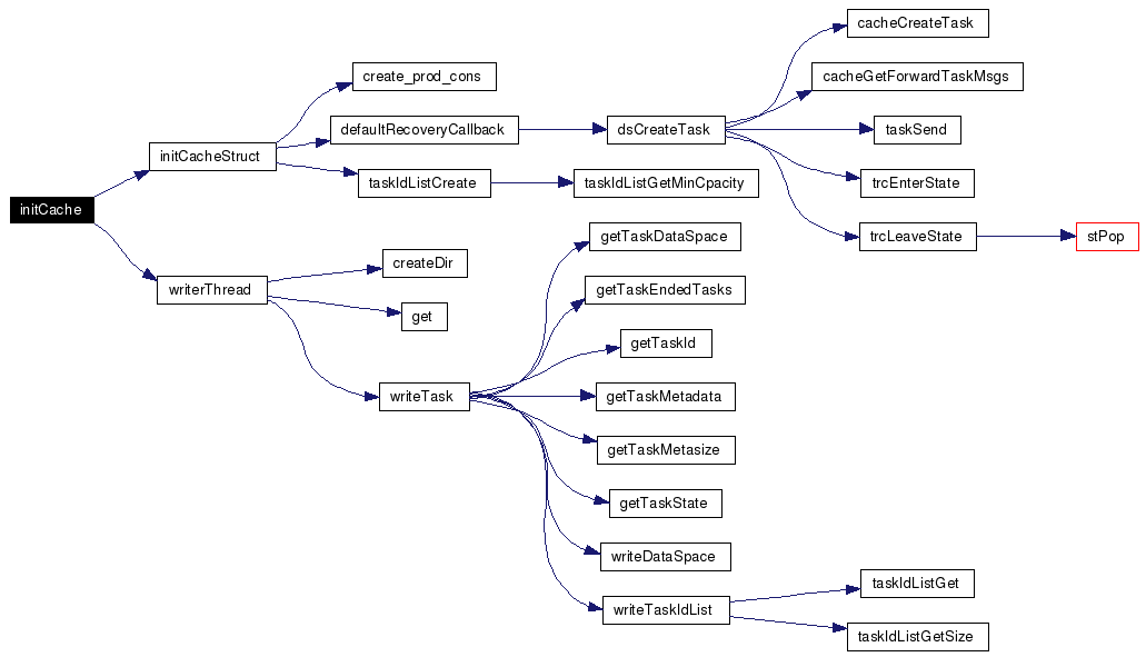 Definition at line 169 of file Cache.c. References cache, create_prod_cons(), Cache::currentTask, Cache::currentWork, defaultRecoveryCallback(), Cache::finishedTasksDir, Cache::forwardTaskMsgs, Cache::IAmTaskCreator, ID_LIST_INIT_SIZE, INITIAL_CAPACITY, PROD_CONS_SIZE, Cache::recoverCallback, Cache::runningTasks, TASK_DIRNAME_SIZE, Cache::taskBuffer, taskIdListCreate(), Cache::tasks, Cache::terminatedTasks, and Cache::useTasks. Referenced by initCache(). Here is the call graph for this function: ![]() |