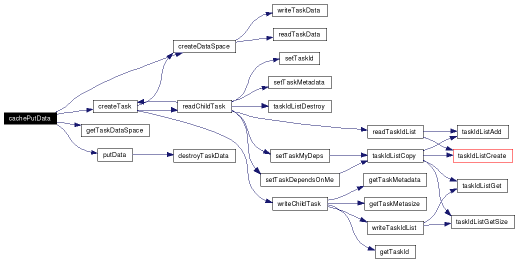 Definition at line 234 of file Cache.c. References cache, createDataSpace(), createTask(), Cache::currentTask, Cache::currentWork, E_NO_SUCH_TASK, getTaskDataSpace(), INITIAL_CAPACITY, putData(), DataSpaceId::task, Cache::tasks, and DataSpaceId::work. Referenced by dsPutData(). Here is the call graph for this function: ![]() |