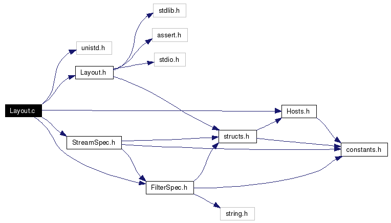 #include <unistd.h>#include "Layout.h"#include "FilterSpec.h"#include "StreamSpec.h"#include "Hosts.h"Include dependency graph for Layout.c: