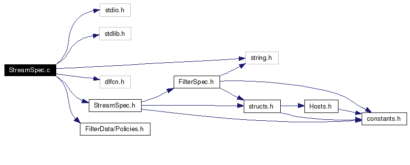 #include <stdio.h>#include <stdlib.h>#include <string.h>#include <dlfcn.h>#include "StreamSpec.h"#include "FilterData/Policies.h"Include dependency graph for StreamSpec.c: