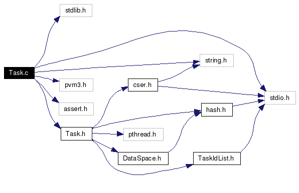 #include <stdlib.h>#include <stdio.h>#include <string.h>#include <pvm3.h>#include <assert.h>#include "Task.h"Include dependency graph for Task.c:
