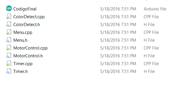 Para facilitar o gerenciamento do código, dado o crescimento do mesmo em cada TP, o código do robô foi modularizado em bibliotecas, cada uma responsável por controlar uma parte especifica do robô. As bibliotecas criadas foram