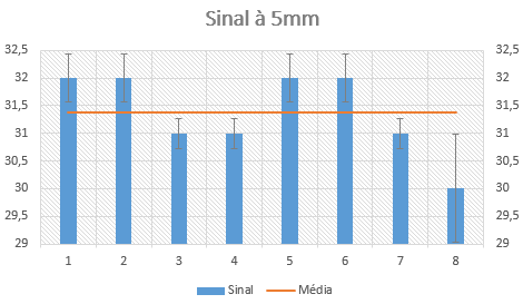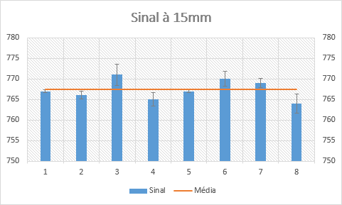 Gráficos dos valores lidos pela distância do objeto ao sensor.