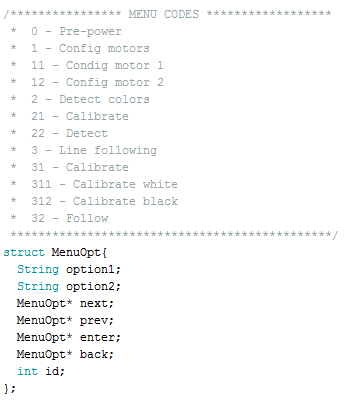 O código do menu foi aperfeiçoado de modo a aperfeiçoar sua manutenabilidade e legibilidade. Cada opção exibida no LCD foi abstraída para uma struct MenuOpt.