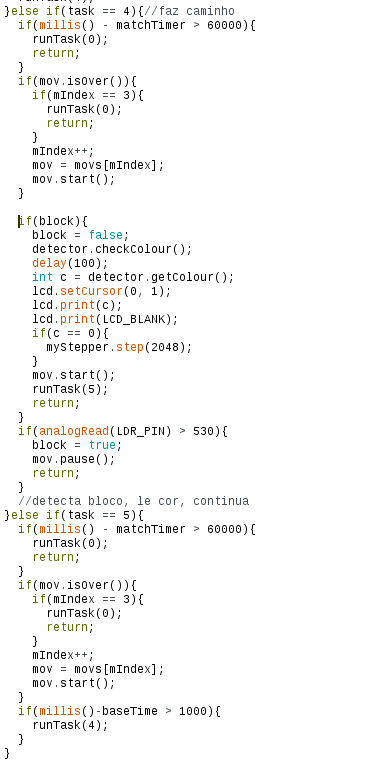 - Acione o motor de passo caso o bloco detectado seja da cor preta