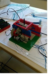 Após essas definições iniciais, começamos a montar o corpo do robô com lego. Primeiramente montamos a base onde fica a junta de revolução e construímos uma caixa de redução de 75:1.