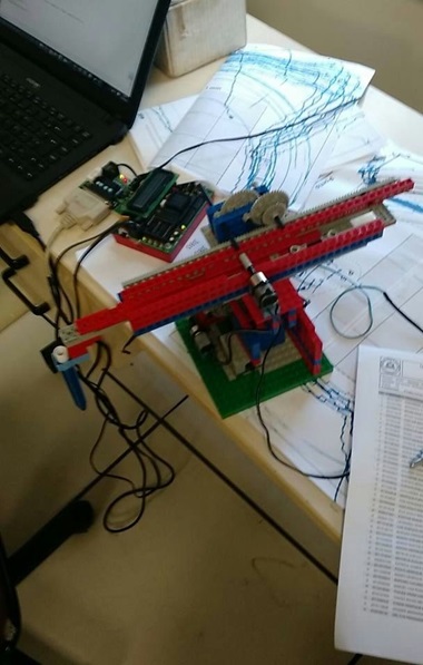 A partir deste momento o robô já executava os movimentos de translação e rotação mas percebemos que o movimento de translação ainda não era executado corretamente. Isso se devia a um problema de baixa sustentação do braço. A peça que ligava a base ao braco era muito pequena. A solução encontrada foi aumentar o tamanho dessa peça e assim conseguimos resolver o problema.