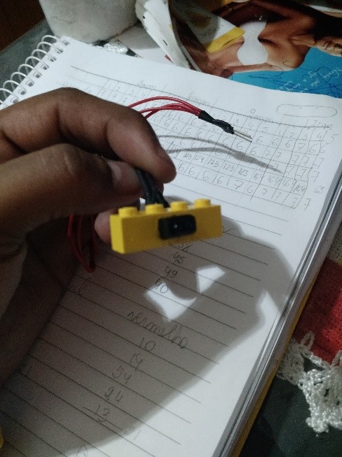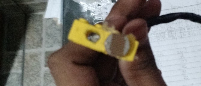 Começamos por montar um sensor do tipo LDR e um LED RGB na estrutura de uma peça de lego, como mostra na figura abaixo. O sensor então nao estava obtendo resultados corretos e então montamos outro sensor um um ldr menor utilizando nesse uma resistência de 10k junto ao sensor. Afim de melhorar a recepção de luz colocamos um termo retrátil no envolvendo o ssensor.