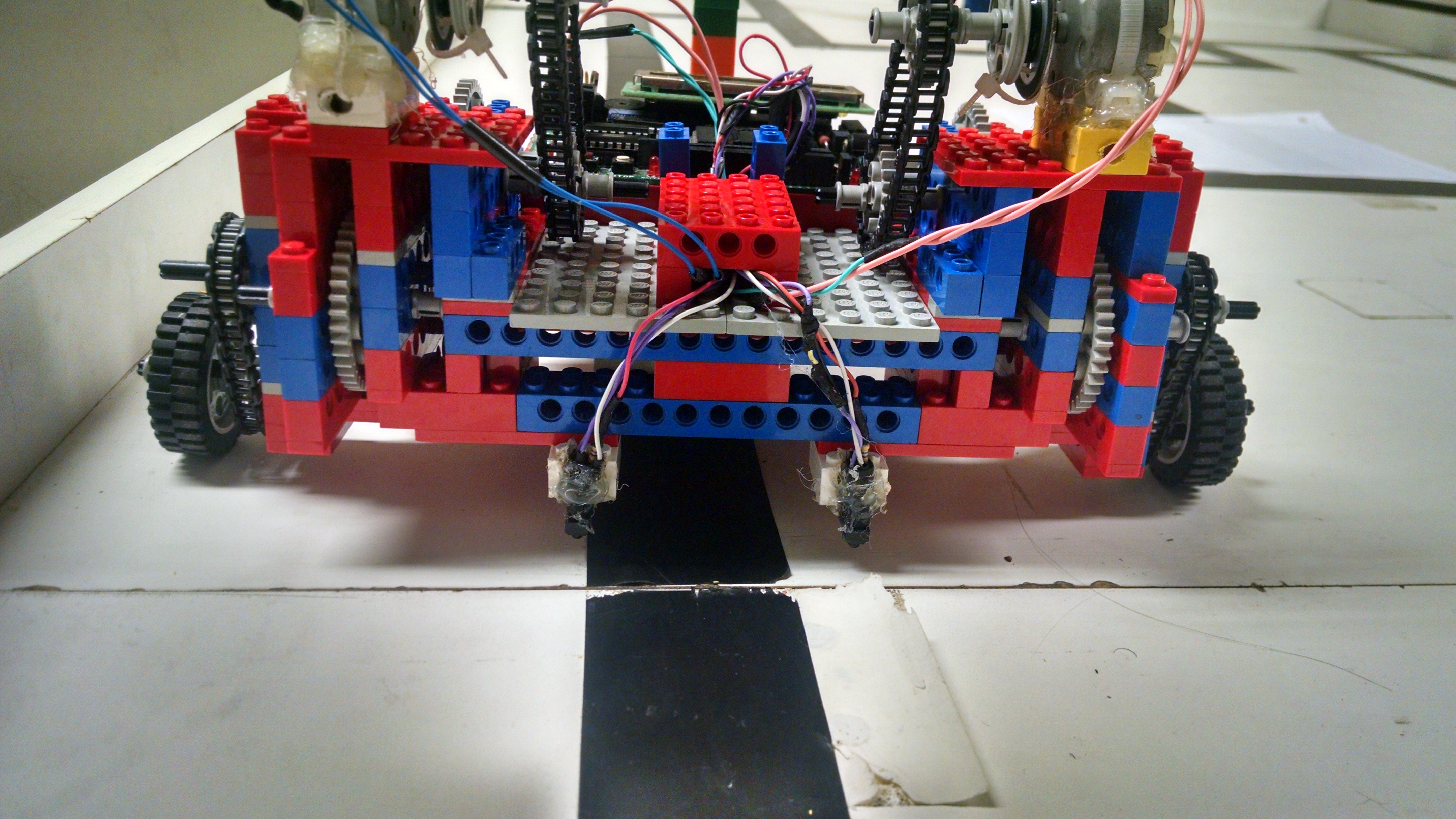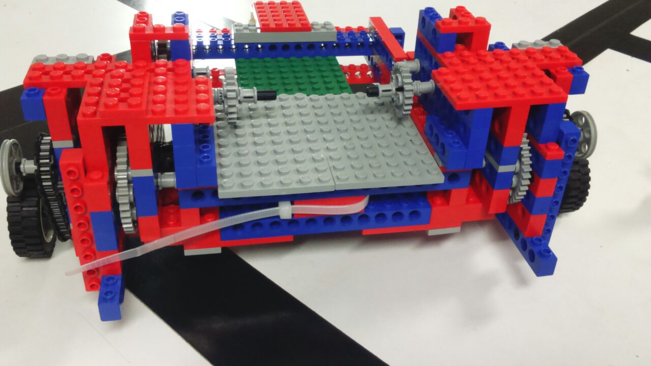 - o lápis usado para desenhar a trajetória do robô foi posicionado o mais próximo possível do eixo central das rodas traseiras. Isso aumenta a exatidão de onde serão desenhadas as linhas.