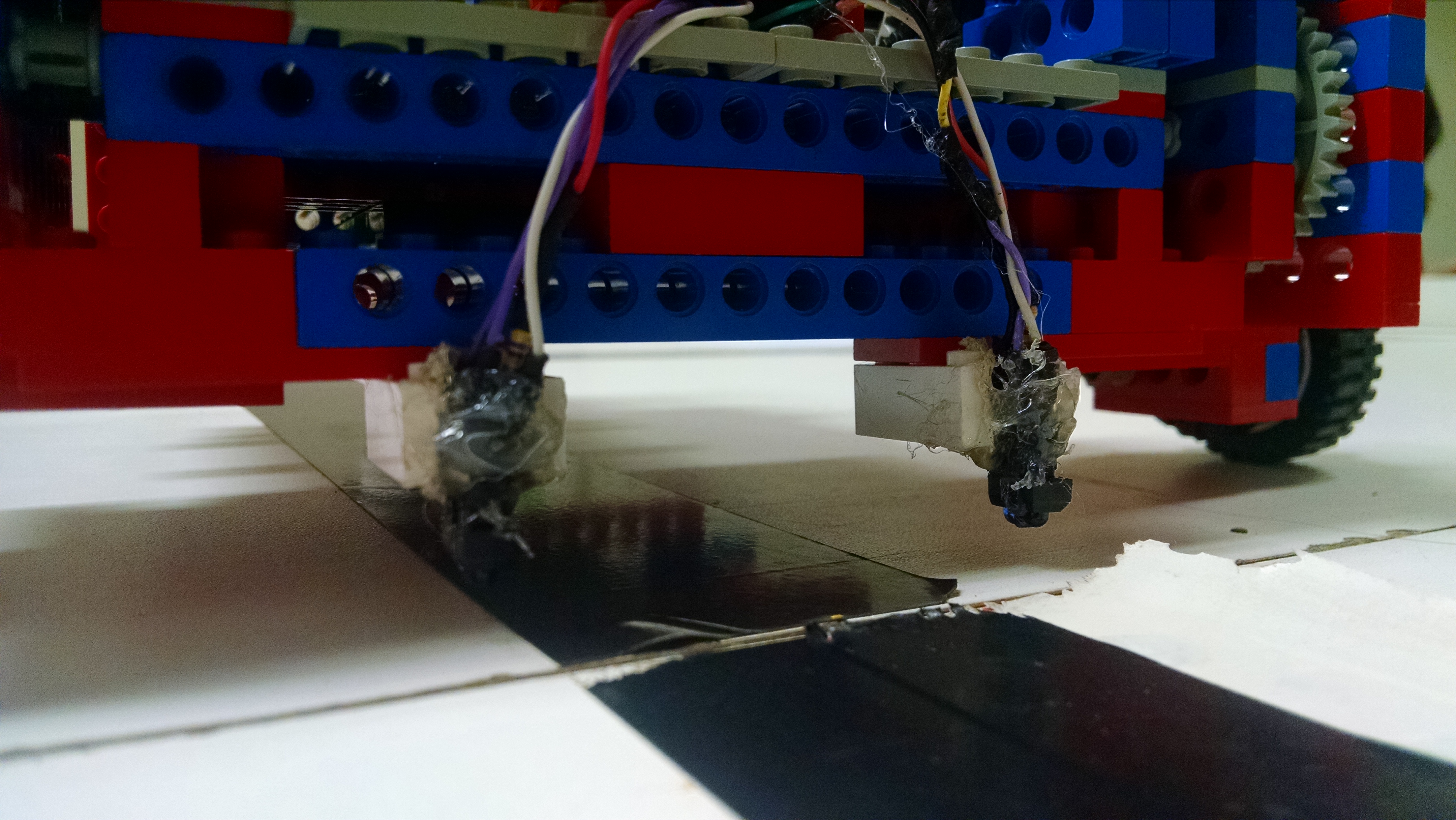 - Sensores usados no line following posicionados próximos ao eixo das rodas