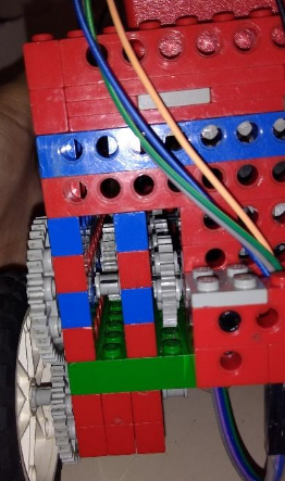 Optou-se pela construção de um robô com 2 rodas simples (tratoras) e uma omnidirecional (conduzida) – número mínimo de pontos de apoio para estabilizar o robô – pelas seguintes vantagens: manobrabilidade e controlabilidade. Os sensores e LED foram posicionados na parte frontal do robô e numa altura máxima que permitisse a reflexão de luz (no caso do LDR) e de infravermelho (no caso do sensor óptico) abrangendo a maior área possível dos blocos.