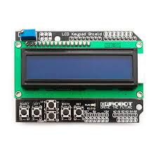 2. Shield do display/teclado: https://www.dfrobot.com/wiki/index.php/Arduino_LCD_KeyPad_Shield_(SKU:_DFR0009)