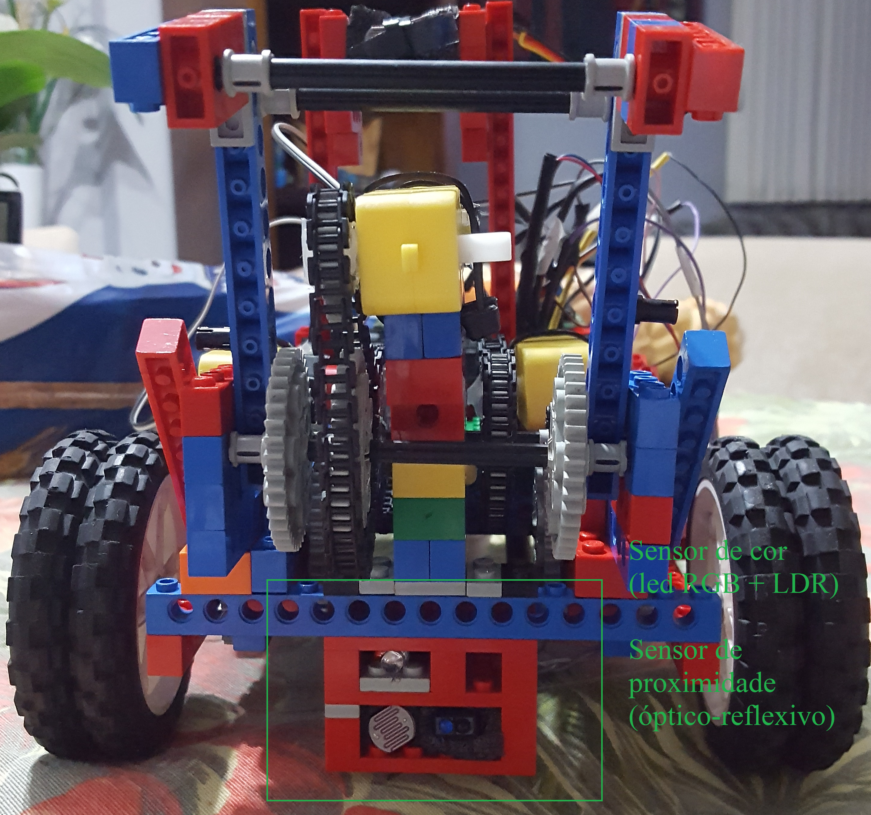 1 sensor de cor - constituído de um led RGB mais um LDR para identificar as cores dos blocos;