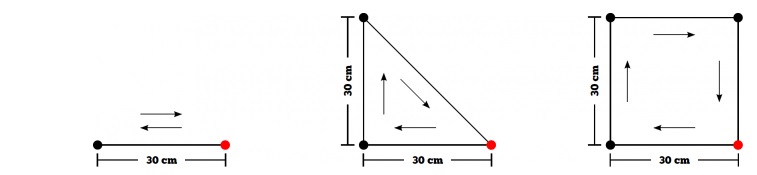 - Desenvolver um robô móvel capaz de realizar um determinado caminho que será selecionado através do menu. A figura abaixo mostram os caminhos que poderiam ser escolhidos através do menu de opções: