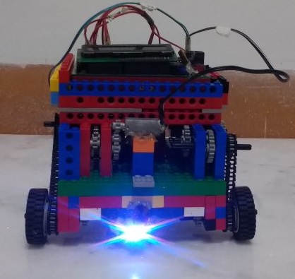 O bloco verde era identificado quando o retorno do LDR fosse maior para o led verde do que para o azul e o vermelho. O bloco azul, por sua vez, era identificado quando o retorno do LDR fosse maior para o led azul do que para os outros dois. Já o bloco vermelho e amarelo, em ambos o LDR retornava um valor alto para o led vermelho, sendo assim, quando a diferença entre o retorno para o led vermelho e para o led verde fossem próximos, o bloco era considerado amarelo, caso fossem distantes, o bloco era vermelho.