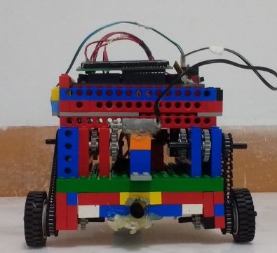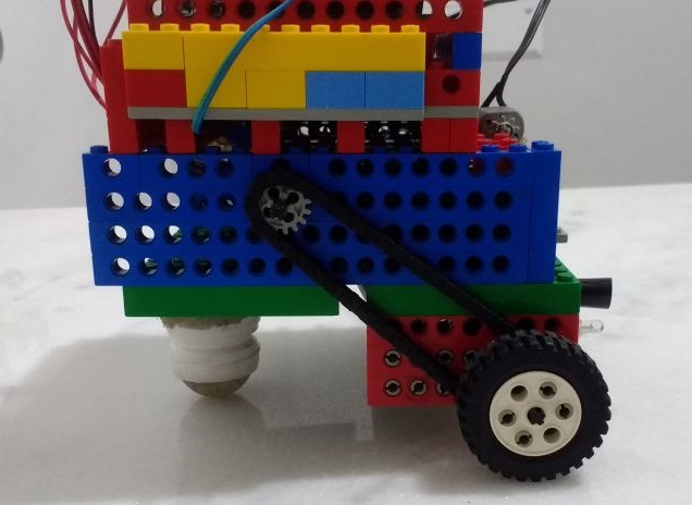 Para a realização das trajetórias especificadas, utilizamos dois motores, um conectado a cada roda dianteira do robô. Também utilizamos uma roda esférica na parte de trás do robo, dando maior estabilidade à ele.