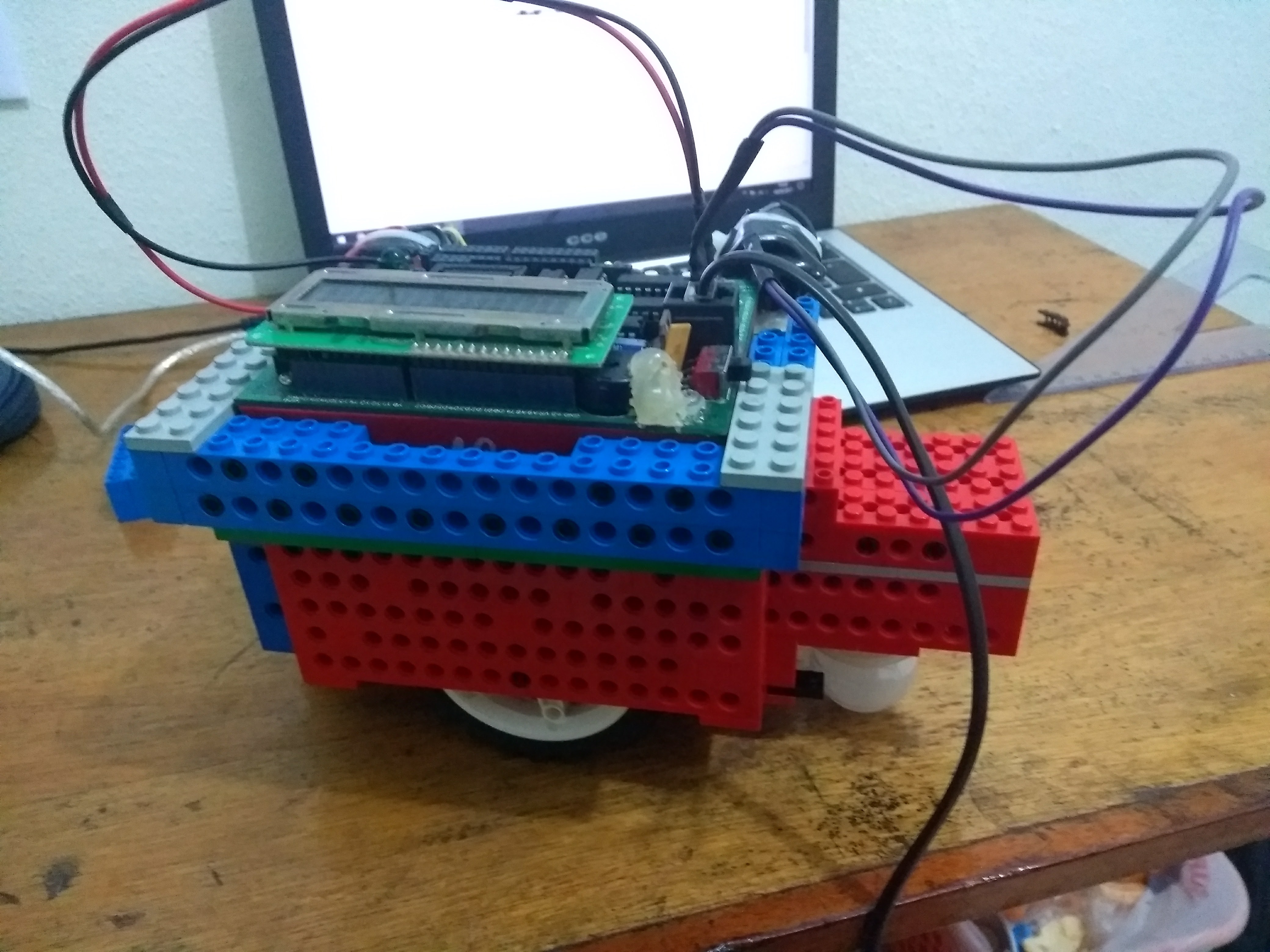 O robô deveria realizar duas tarefas simultaneamente: locomover-se por uma trajetória em linha reta e, em um determinado momento, identificar a presença de um bloco à sua frente e tomar uma decisão com base na cor do bloco identificado.