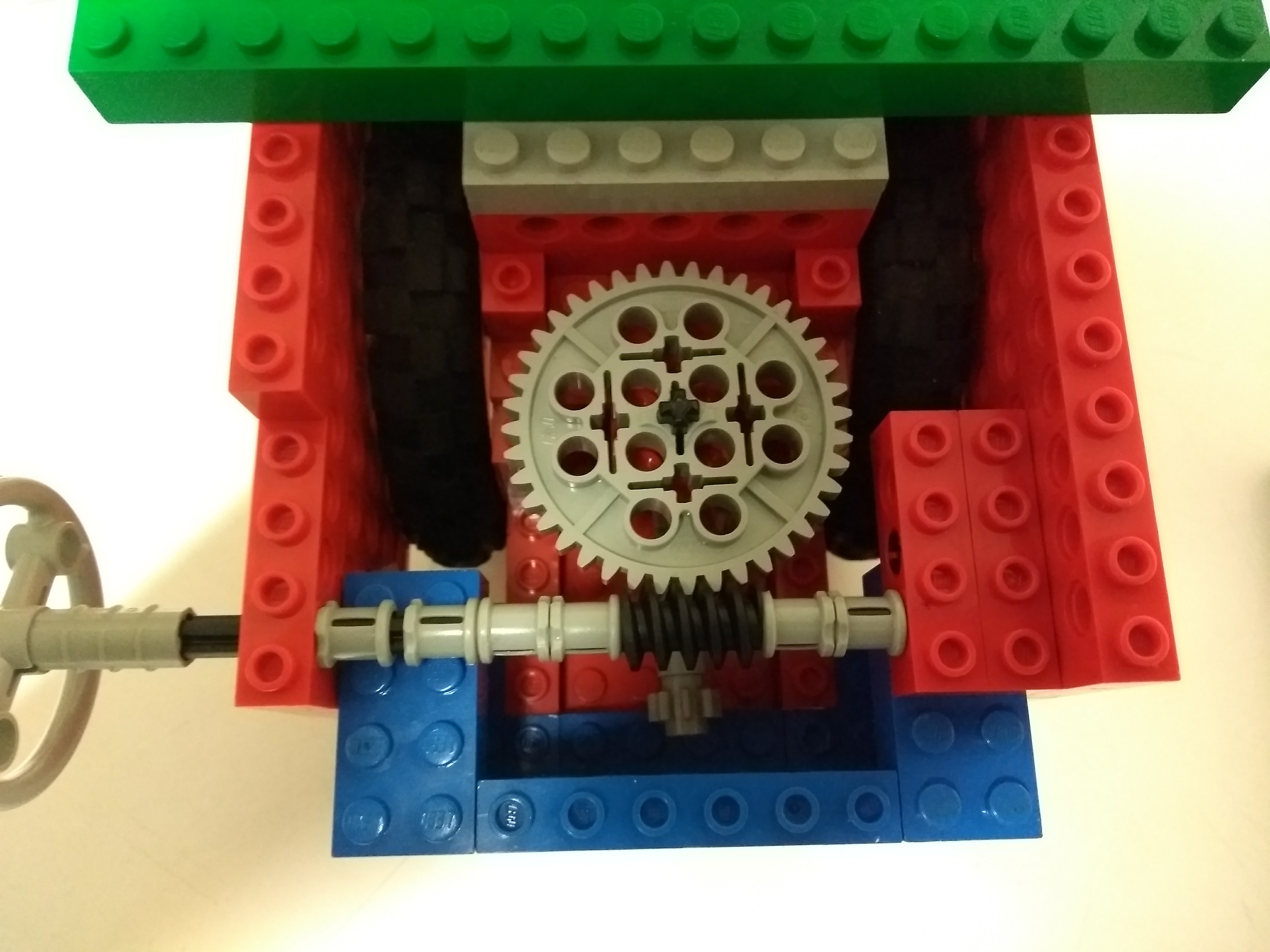 A primeira dificuldade encontrada em relação ao robô foi a construção de um sistema no qual somente um motor ficasse responsável pela tração, em vez de dois. Como temos dois