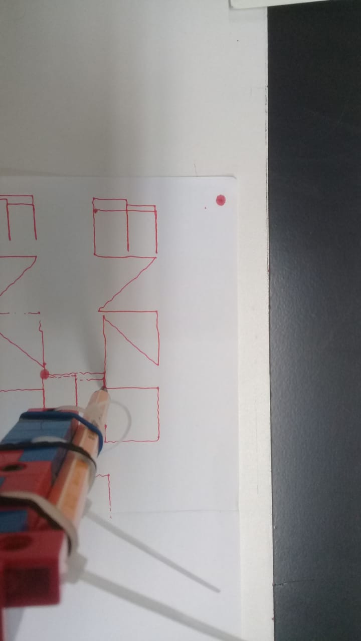 Nesse ponto do projeto, faltava pouco para alcançarmos nossos objetivos. Com o aprimoramento de nosso código, programado no arduino, ENZO conseguiu finalmente escrever seu nome e desenhar um círculo (não tão perfeito, mas melhor do que nossos projetistas conseguem fazer à mão livre!):