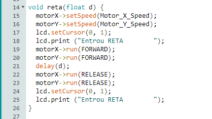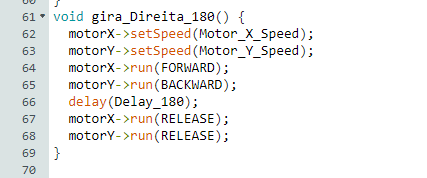 Essas funções utilizam os delays e velocidades definidos através de tentativa e erro, com os valores abaixo