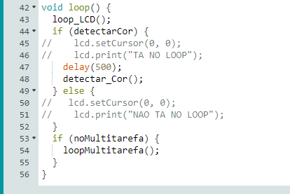 As variáveis detectarCor e noMultitarefa são variáveis booleanas de controle pra execução das tarefas 2 e 3. A definição do que fazer na tarefa 1 é realizada dentro da função loop_LCD.