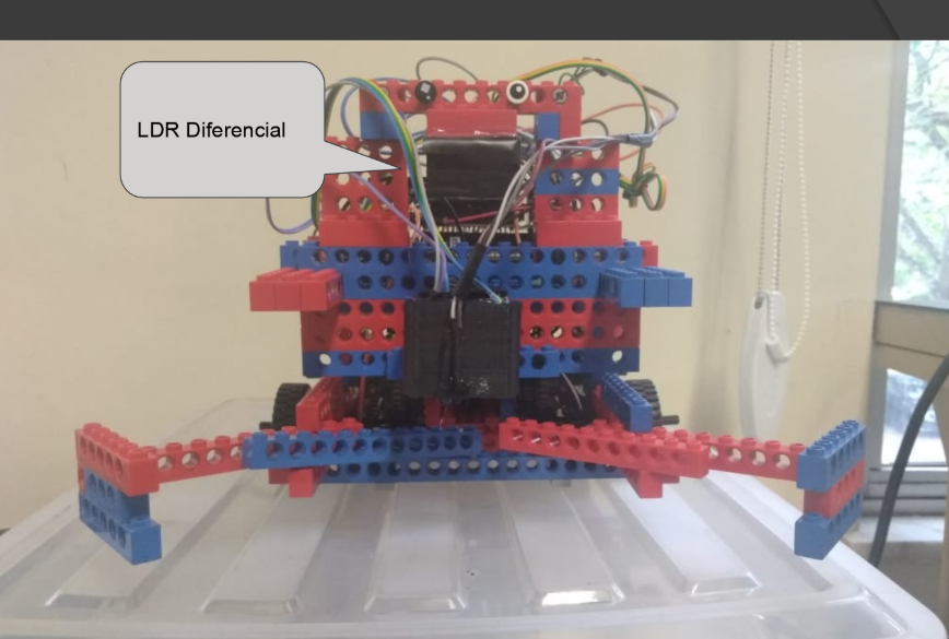 - 2x LDR diferencial para detectar em qual lado o robô estava
