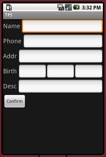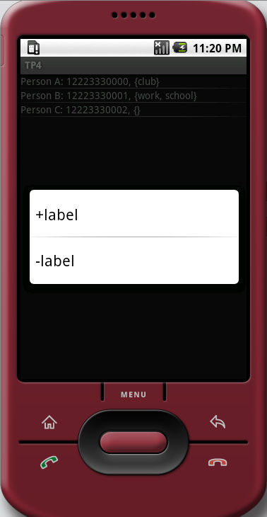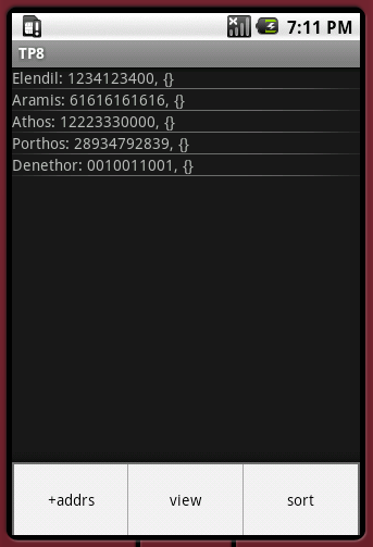 This project is divided into eigth parts. At the end of the eighth step, you will have developed a full-blown Android application. We will be developing a phone-book, that associates names to phone numbers. You can also assign one or more labels to each entry, like gmail does, for instance. Each part of the homework is described below: