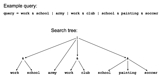 The main objective of this part of the homework is to code a simple and elegant program that handles the searches. It is important to keep the Single Responsibility Principle in mind in this part of the homework. The class that does the parsing, breaking a query string into some simpler, more understandable units, should not be the same class that does the search itself, and, ideally, none of these classes should have anything to do with the GUI that receives the queries.