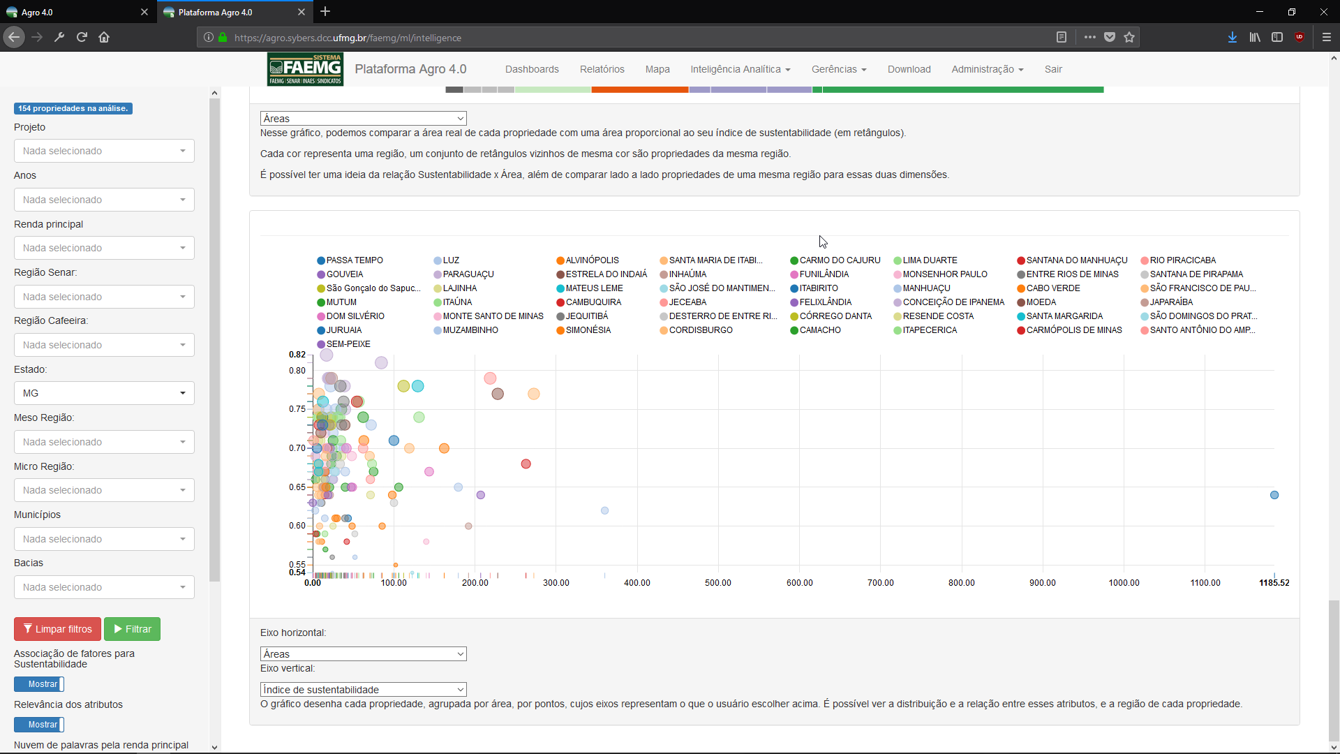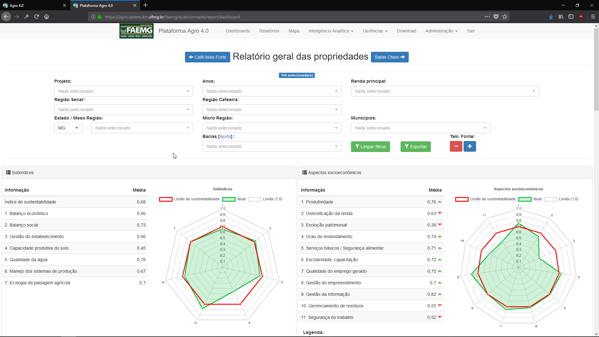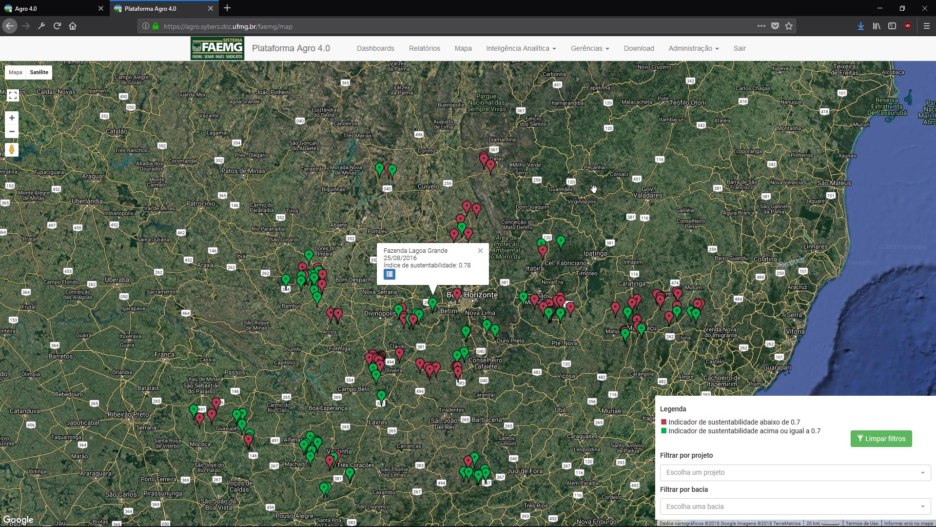 Visit Paper (2020)In this work we present Agro 4.0 , a system that receives data - such as soil quality, water quality, pesticides utilized, farming and agricultural activities -, carefully collected by a rural technician from one or more rural properties and evaluates those properties according to the aspects of an agroecosystem regarding sustainability. The collected data is used by the system to compute indicators used to generate a Sustainability Index for each rural property. The data and indicators also feed statistical models, through data mining techniques, to aid in the extraction of useful information aboutthe relation between the collected data and the indicators obtained. With this information in hand, the rural proprietaries have relevant and quantitative information to aid them in making decisions and taking actions to increase their properties’s sustainability.