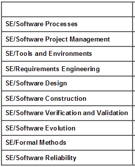 Unidades (ACM CS2013) de Engenharia de Software tabela